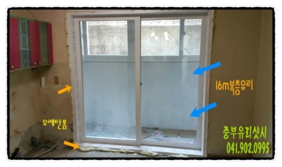 이제 16m 한국유리 복층유리를 설치합니다.