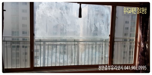 두정동 유리. 계룡리슈빌 아파트 유리. 습기 유리 교체. 쌍용동 유리